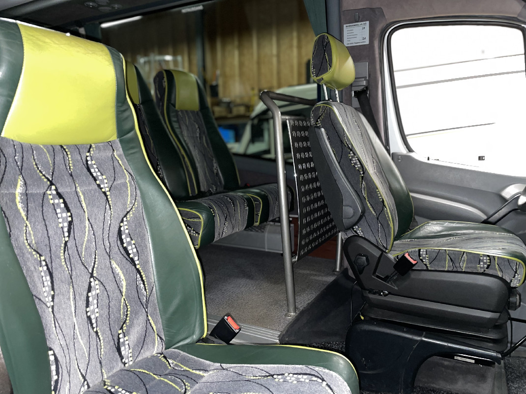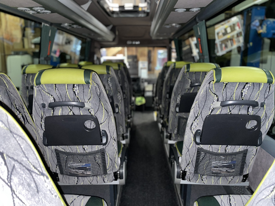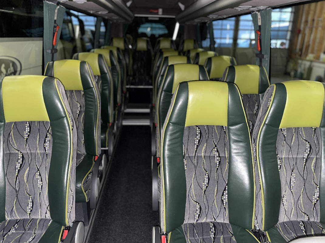 19 + 1 PassagierplätzeUnser Midi-Reisebus verfügt über eine automatische Einstiegstür mit Trittbrett, eine Klimaanlage, einen Kühlschrank und einen geräumigen Kofferraum. Die seitlich und nach hinten verstellbaren Sitze sorgen für zusätzlichen Komfort während der Fahrt.